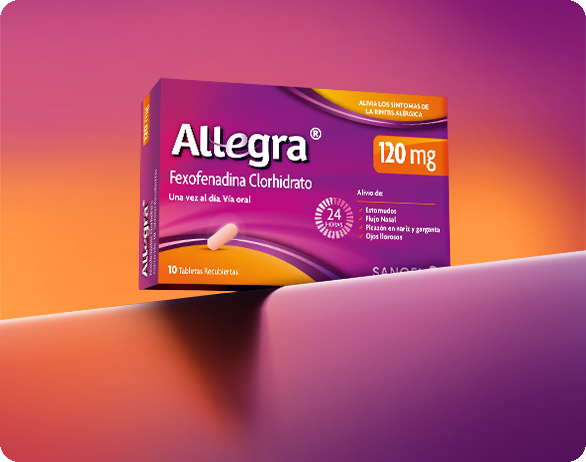 ¡No dejes que la alergia te detenga! Allegra® actúa de manera rápida y eficaz para aliviar los síntomas más molestos, como estornudos, secreción nasal y picazón en los ojos. Con su acción segura y confiable, te ayuda a seguir con tu día sin interrupciones, brindándote el bienestar que necesitas para sentirte bien.