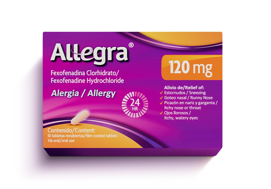 Fexofenadina, el principio activo de Allegra®, proporciona alivio de la alergia sin producir somnolencia**, con 0% de interferencia cerebral*1. Alivia síntomas de la alergia como estornudos, secreción nasal y picazón en los ojos. ¡El alivio de la alergia no tiene por qué ser una elección entre el alivio y la somnolencia!