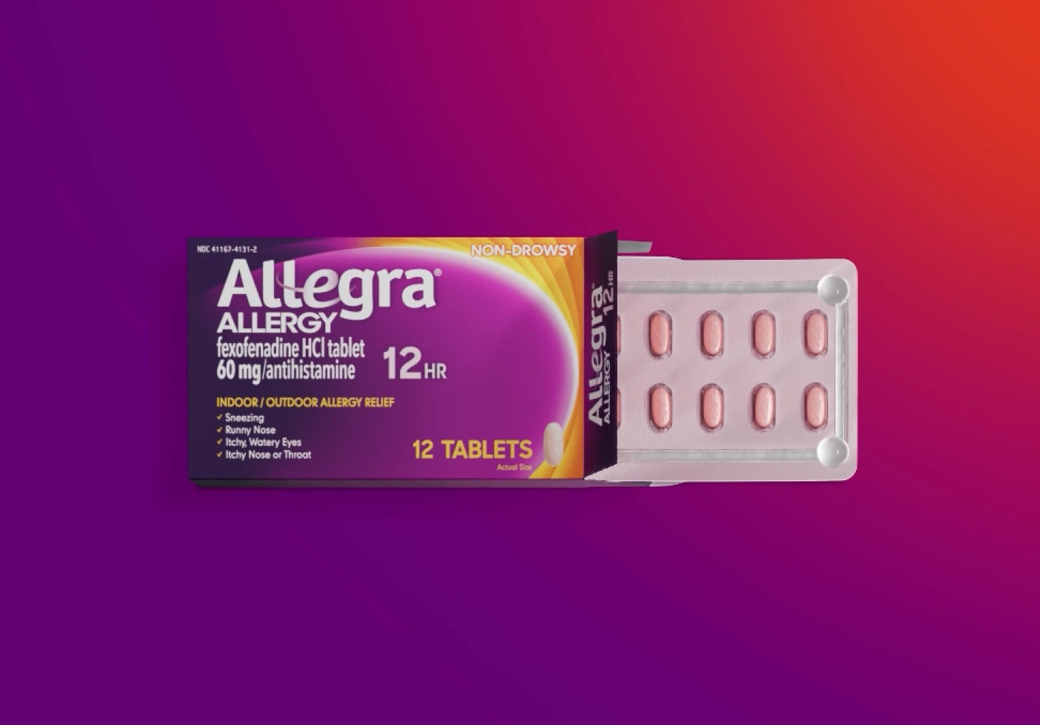 Get fast-acting relief from tough allergy symptoms like a runny nose, sneezing, itchy, watery eyes and itchy nose or throat. Allegra® kicks in within just one hour with 0% brain interference for non-drowsy allergy relief - that's right, it doesn't cross your blood-brain barrier and leave you feeling sleepy. That's why it's the #1 allergist-recommended non-drowsy allergy brand*.